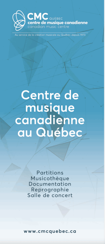 Le Centre de musique canadienne au Québec ouvre ses portes en 1973 à Montréal. Il soutient et favorise le développement de la création musicale de ses compositeur.trices agréé.es. Le CMC Québec contribue au patrimoine, à la présence d’une diversité musicale et permet le développement de sa discipline artistique. Référence quant à la documentation de la musique de création québécoise et canadienne, il promeut la musique de création en développant différentes activités de diffusion, de distribution et de mise en marché. Il offre également plusieurs services à ses membres qui bénéficient, notamment par l’entremise de l’atelier de reprographie, d’une gestion du catalogue d’œuvres et d’un système de redevances avantageux. Ouvert à sa communauté, le CMC Québec inaugurait l’Espace Kendergi en 2012 en mémoire de Maryvonne Kendergi, lieu de diffusion de concerts, conférences et ateliers de formation dans une ambiance intime et chaleureuse.
